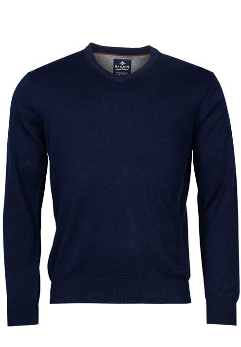 Baileys Navy 100% Lambswool Mix V Neck Sweater.