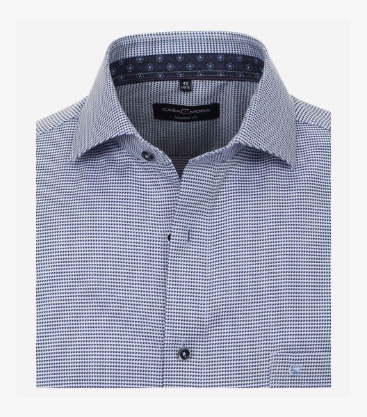 Casa Moda Blue Patterned Long Sleeve Shirt With Contrast Trim Inside Collar and back of Cuffs.