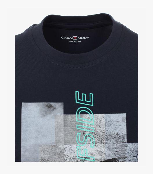 Casa Moda Navy Printed Crew Neck Tee Shirt.