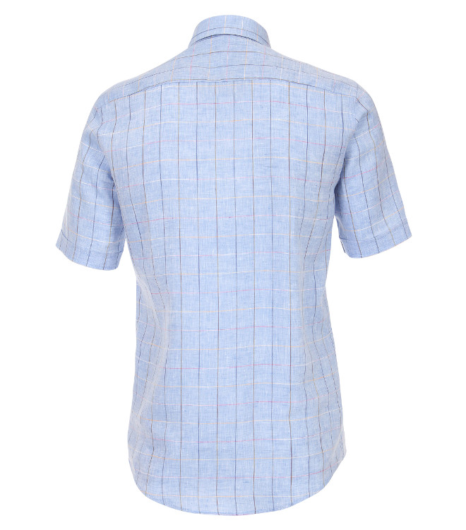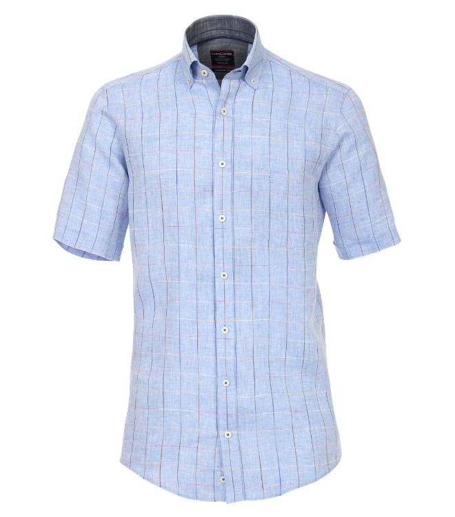 Casa Moda Blue Checked Linen Half Sleeve Shirt.