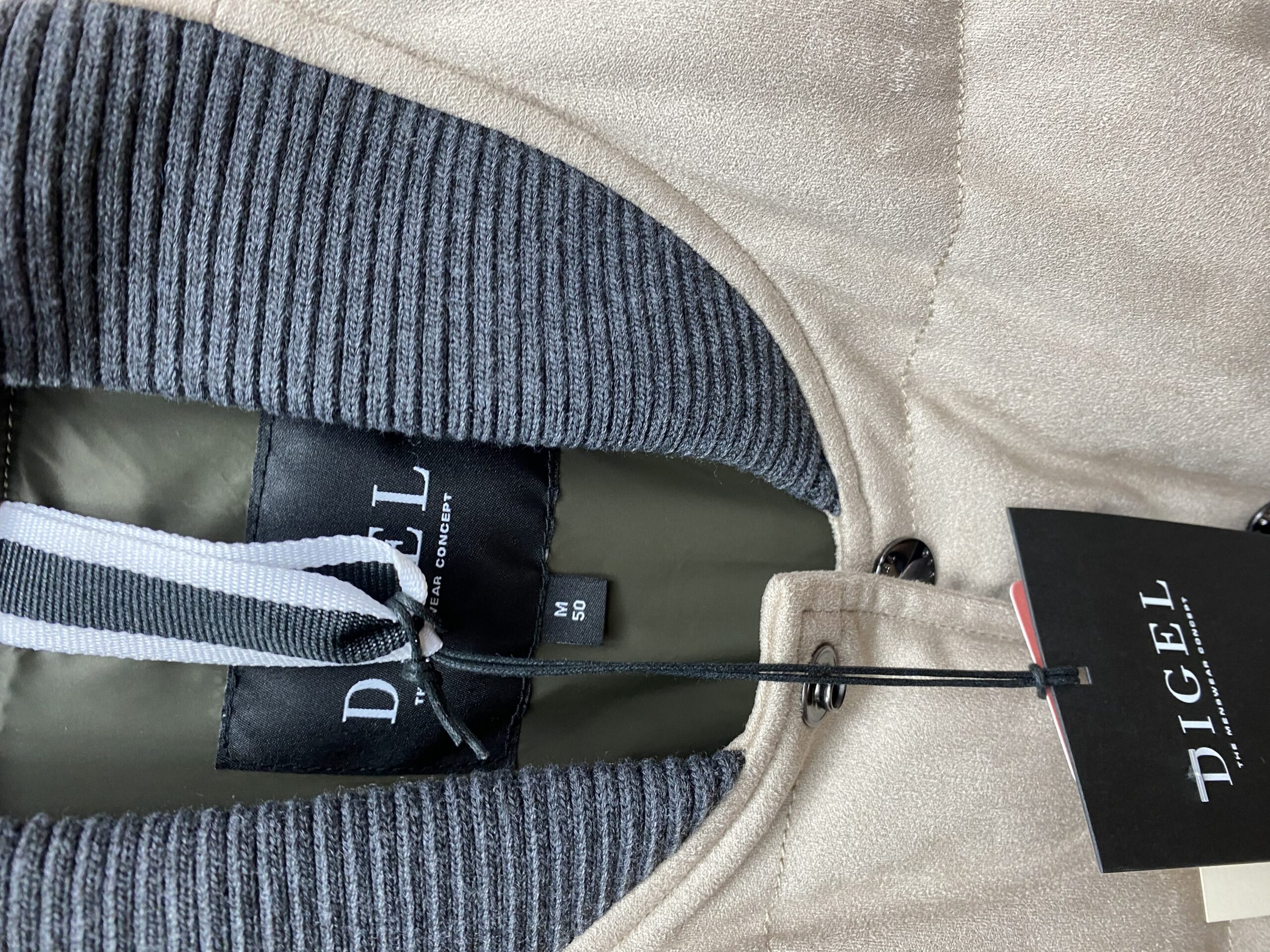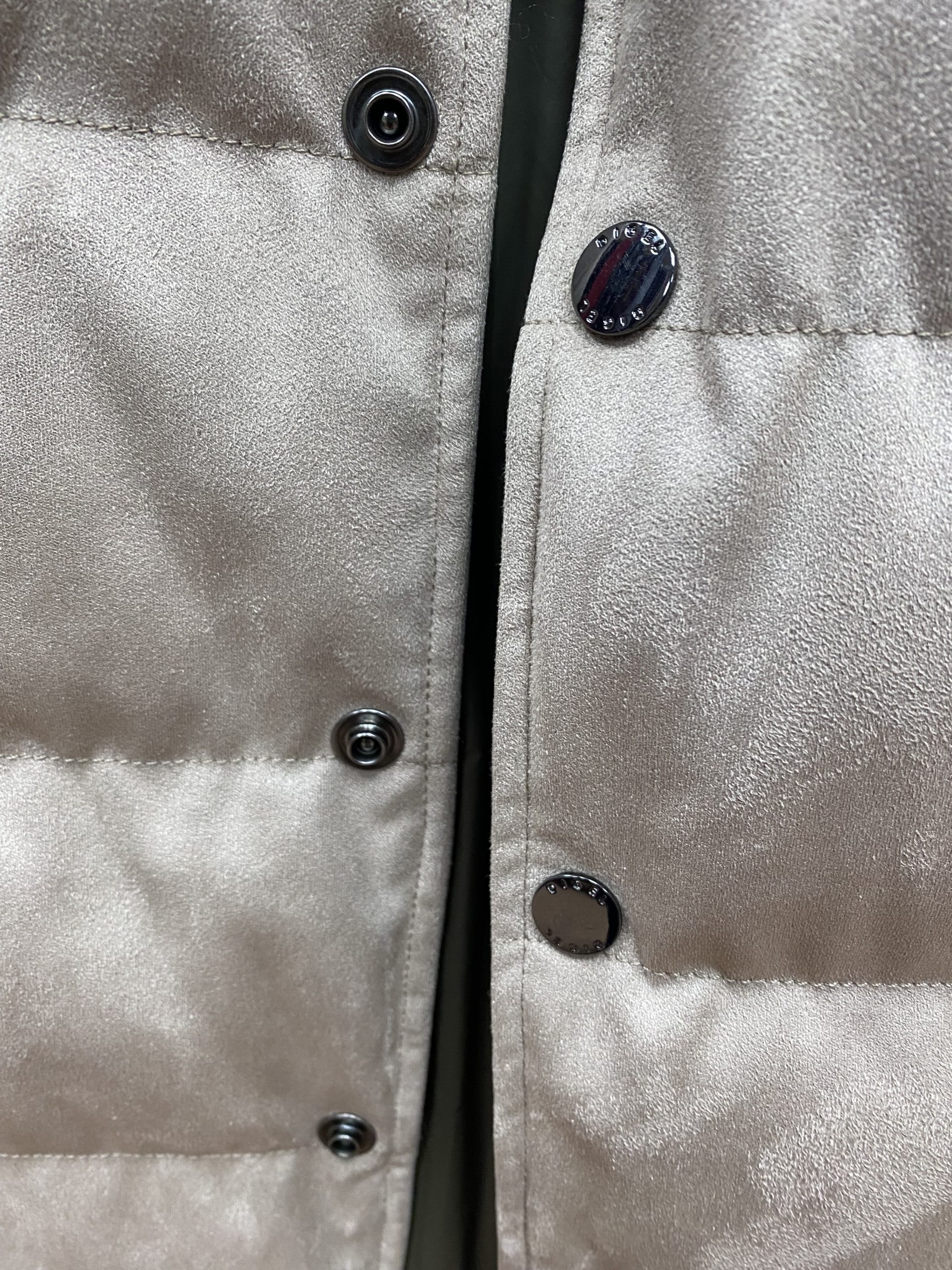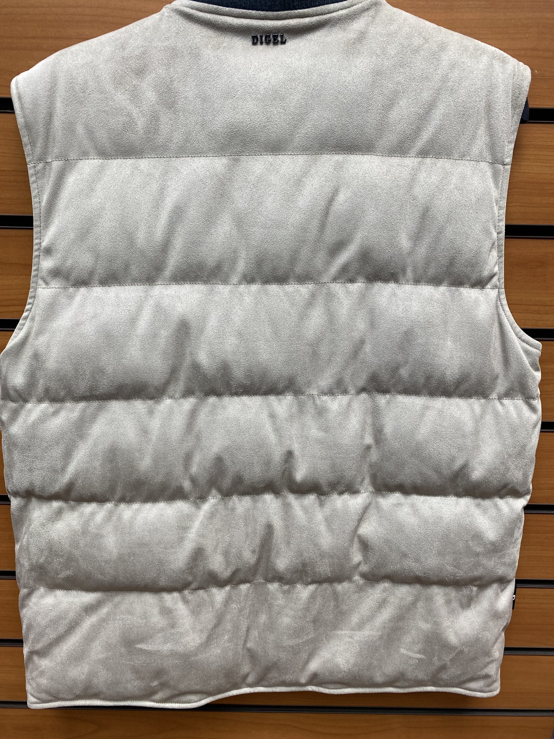 Digel Beige Lightly padded gilet with Grey knotted collar .
