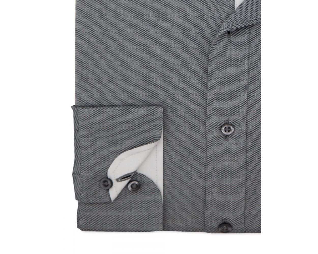 Double Two Charcoal Grey Long Sleeve Oxford Weave Shirt.