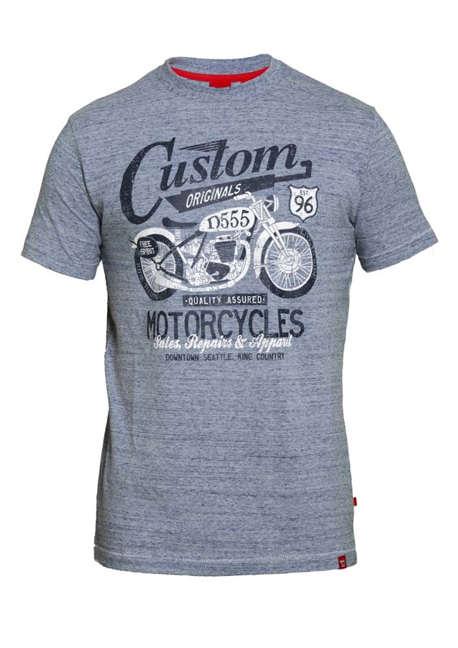 Duke Blue ‘Custom’ Motorbike Chest Print Tee Shirt.