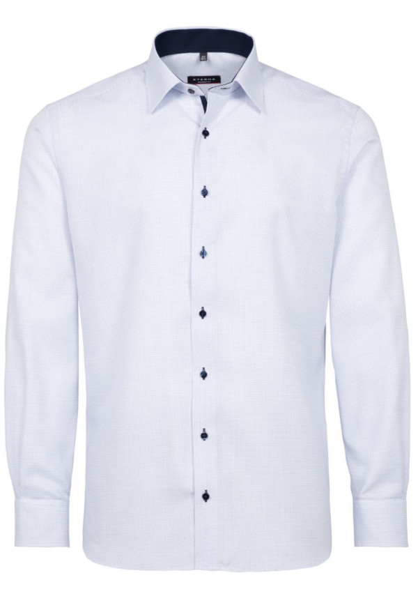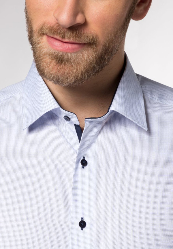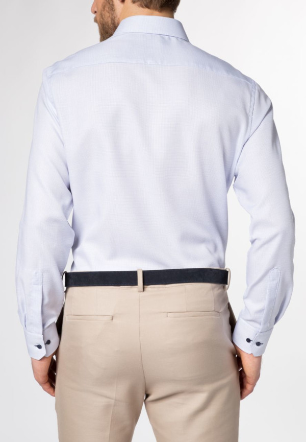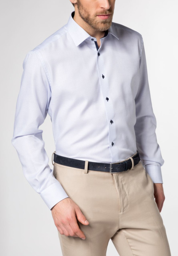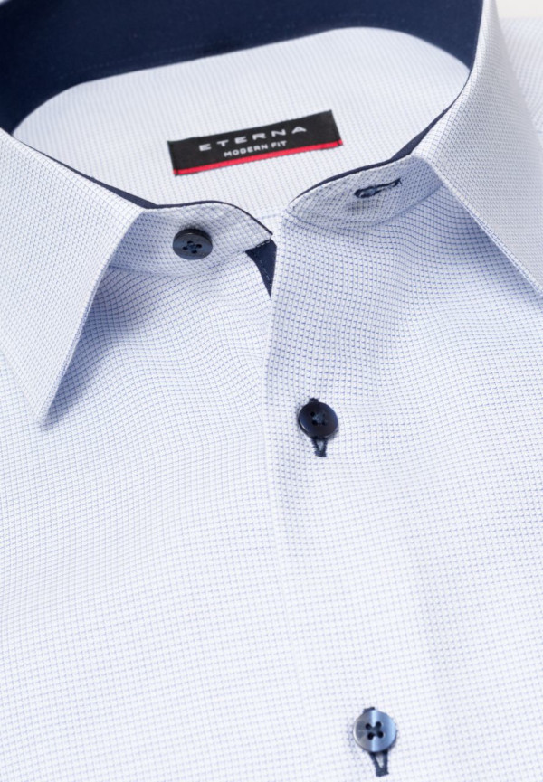 Contrast Navy Trim Inside Collar and Back Of Cuffs.