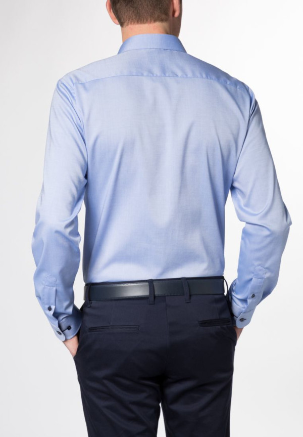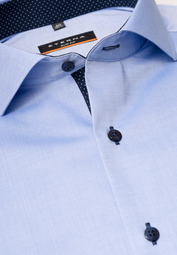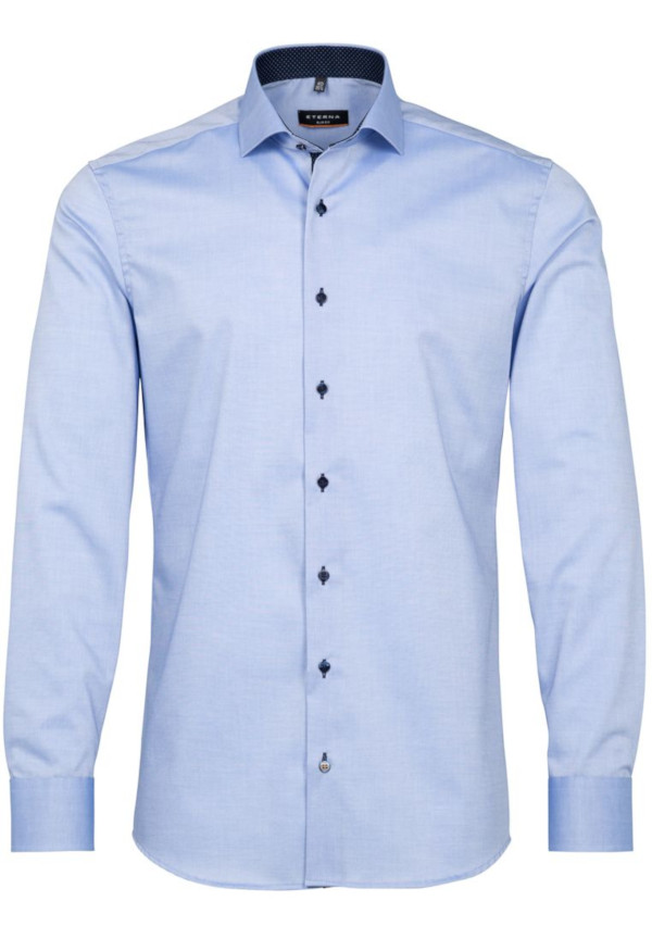 Eterna Blue Long Sleeve Shirt With Contrast Trim.