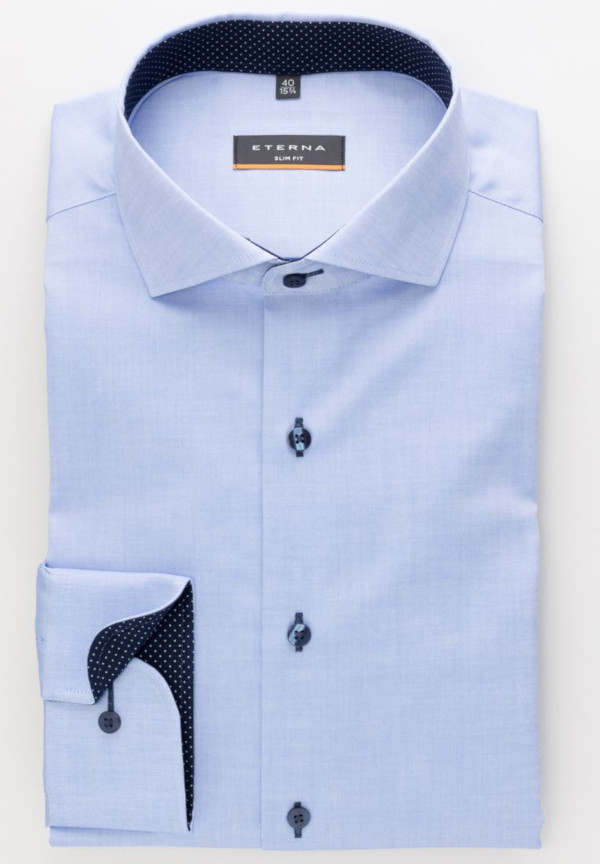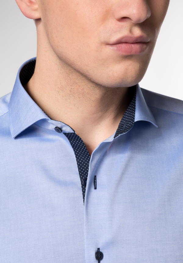 Eterna Blue Slim Fit Long Sleeve Shirt With Trim