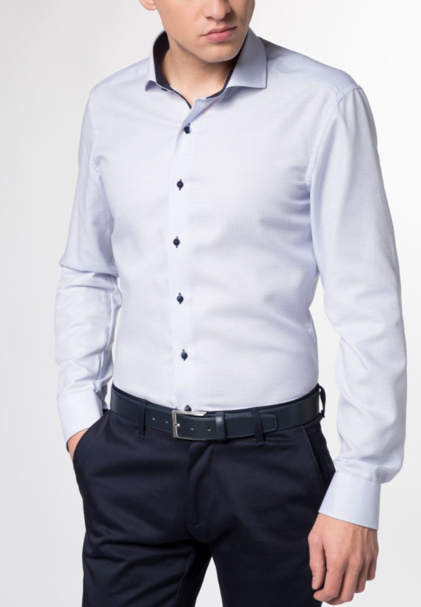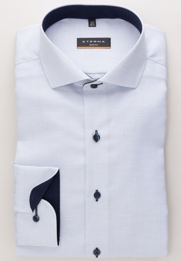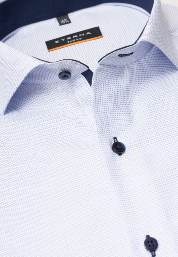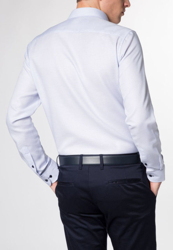 Eterna Blue Textured Slim Fit Long Sleeve Shirt With Trim