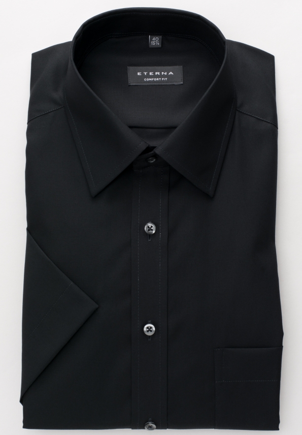Eterna Comfort Fit Shirt Black Short Sleeve
