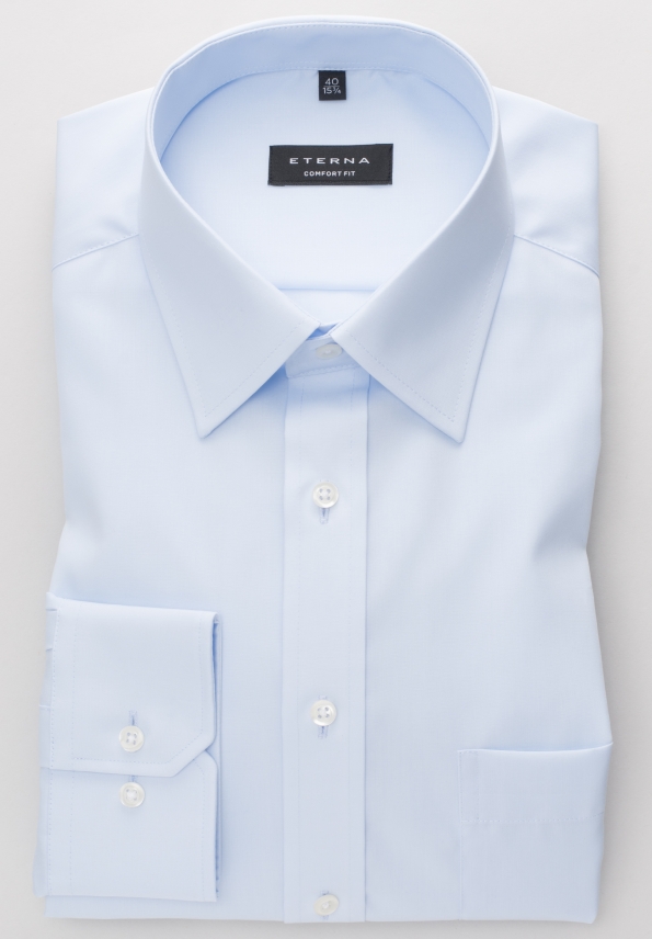 Eterna Comfort Fit Shirt Blue Long Sleeve