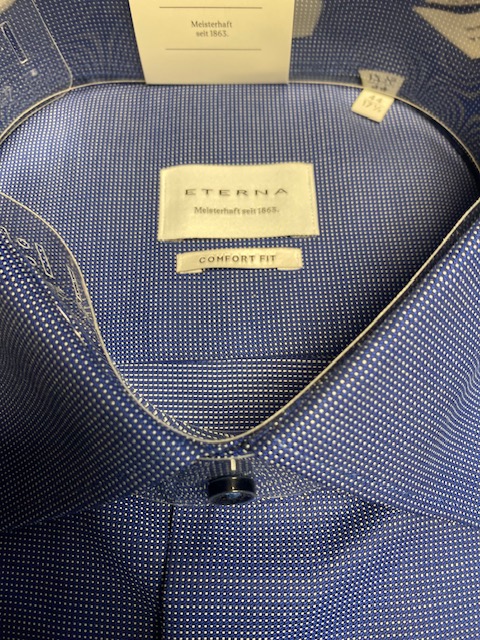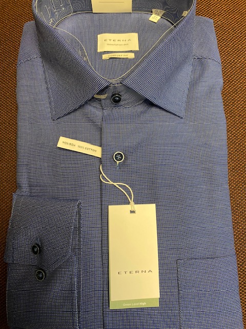 Eterna Dark Blue Fine Pinspot Long Sleeve Shirt.