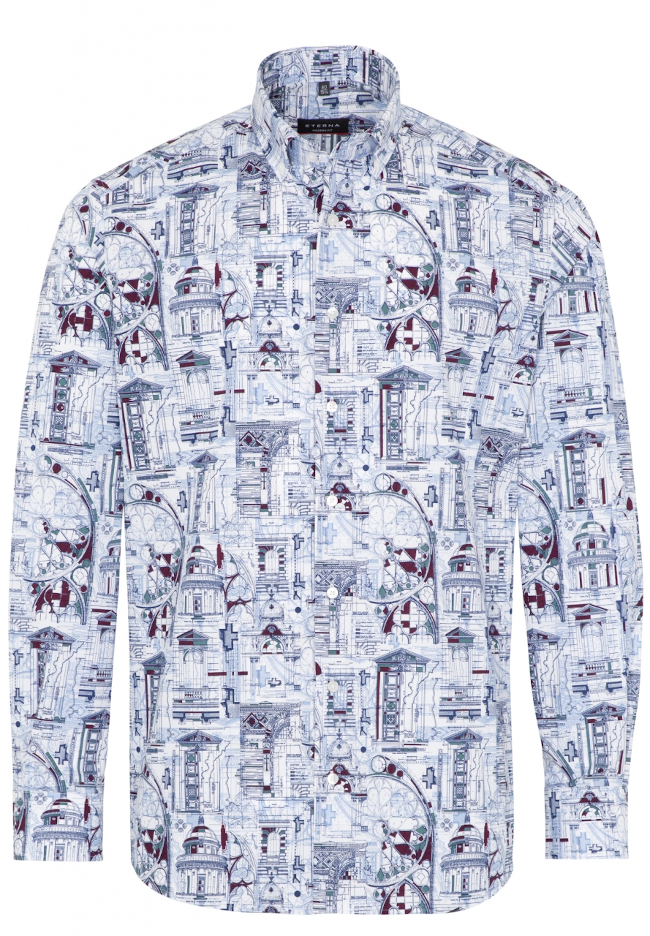 Eterna Multicoloured Printed Cotton Long Sleeve Shirt.