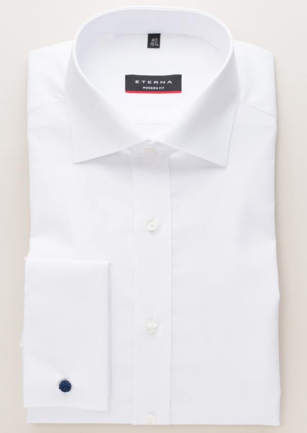 Eterna White Double Cuff Long Sleeve Shirt. Modern Fit