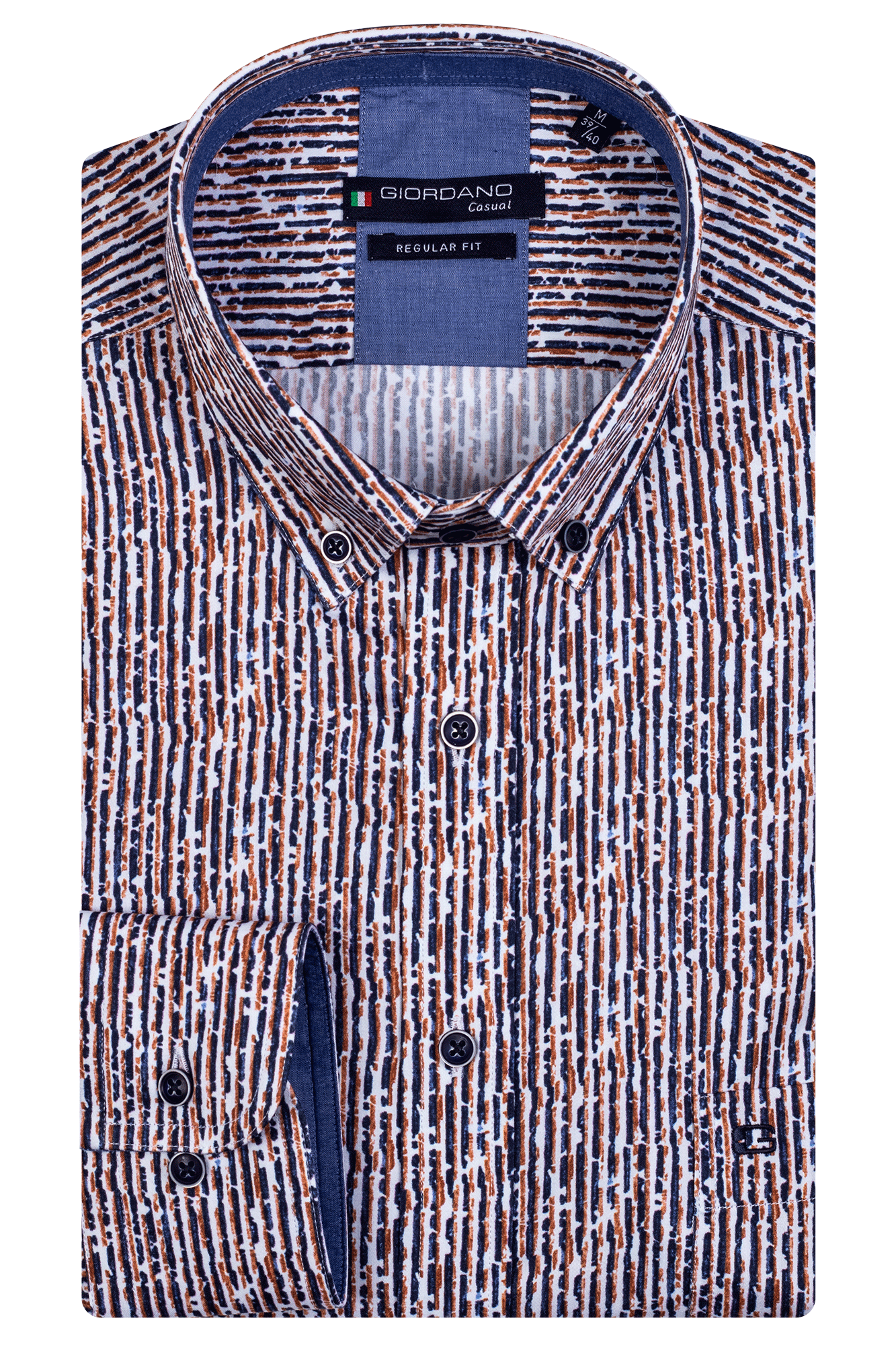 Giordano Rust/Navy Printed Long Sleeve Shirt.