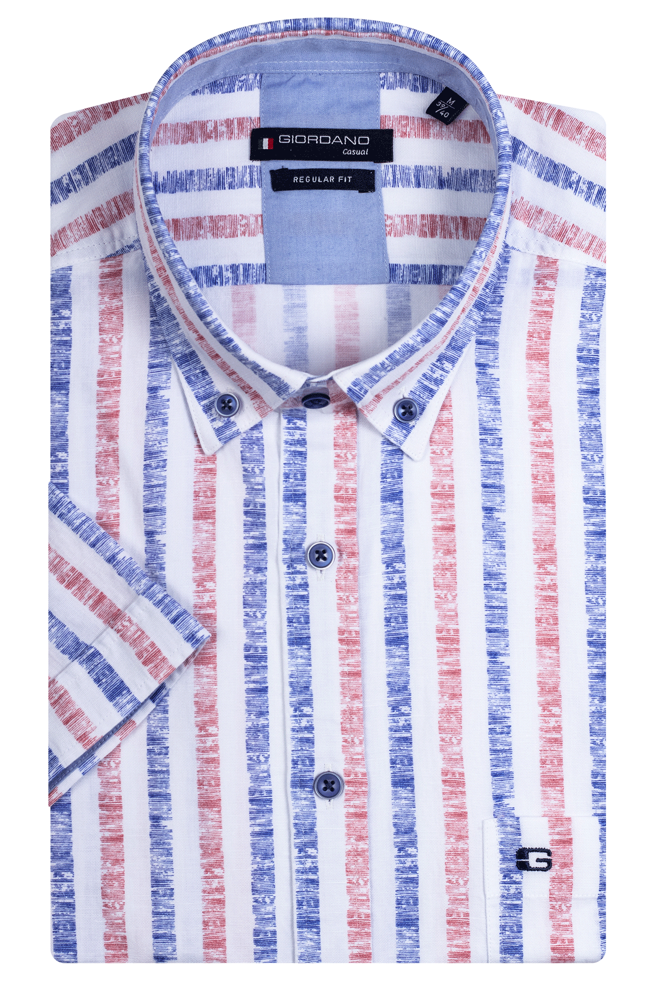 Giordano Striped Cotton Linen Short Sleeve Shirt.