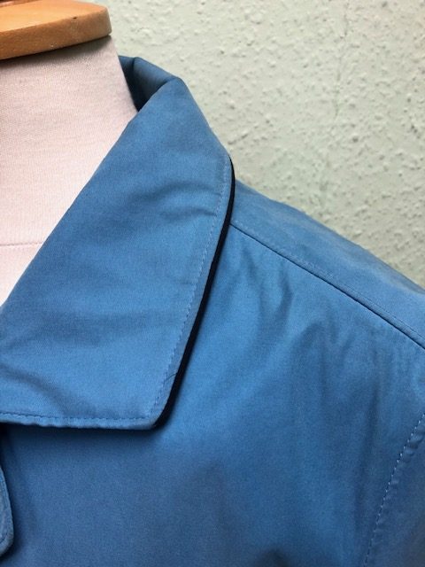 Contrast navy Trim around collar and cuffs and pocket edges
