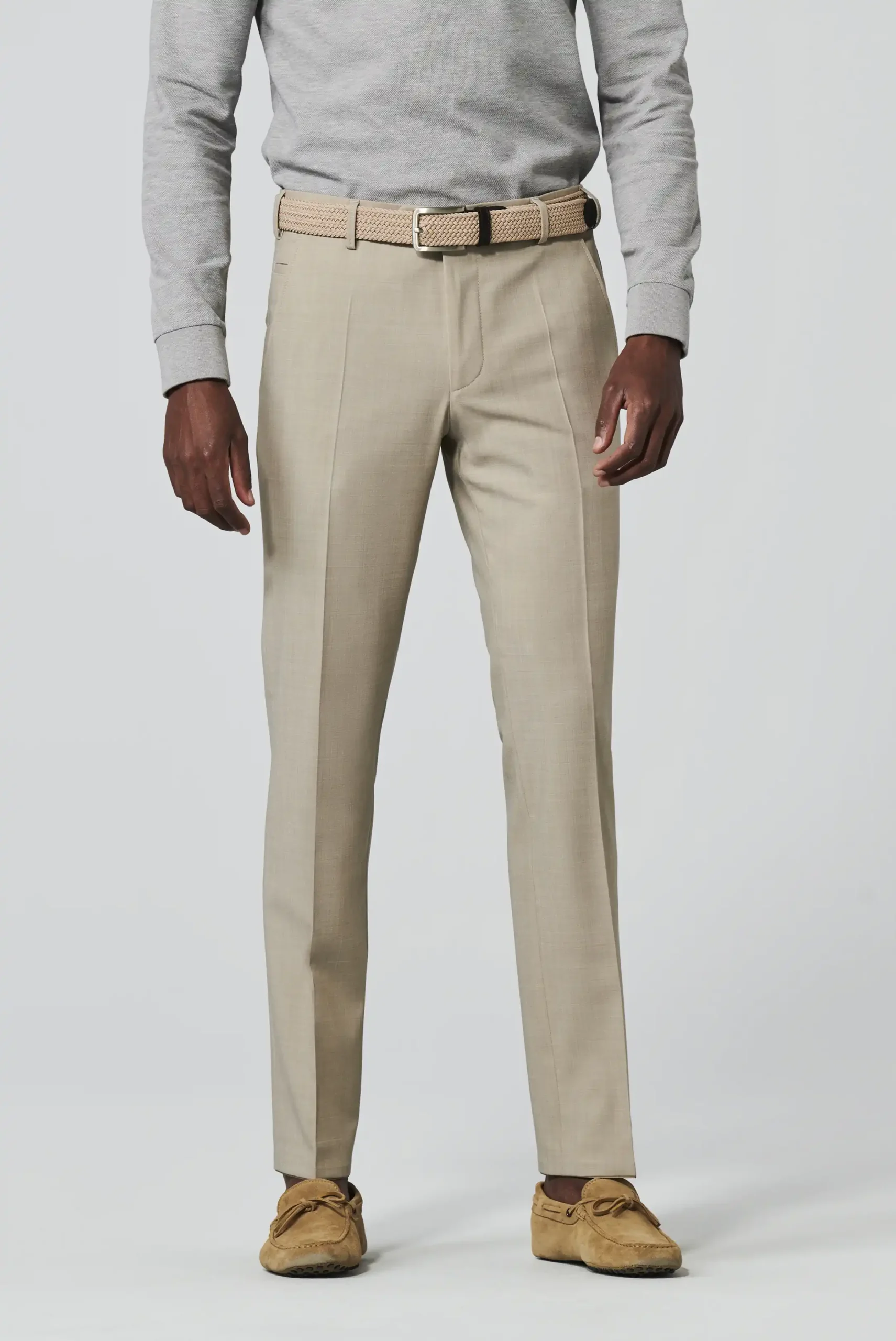 Meyer Mid-Weight Beige Wool Mix Trouser.