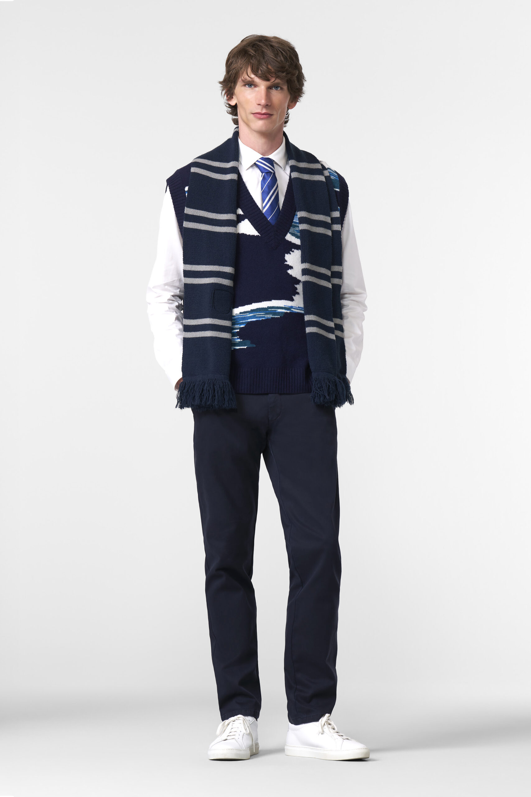 Meyer Navy Autumn Weight Fine Texture Chino Trousers