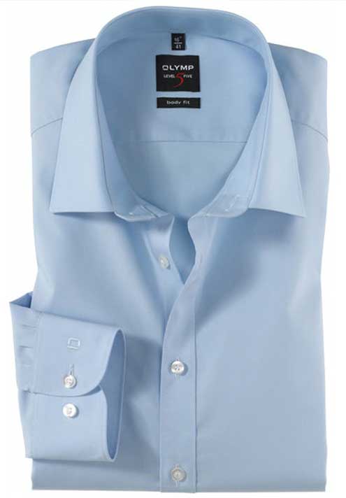 Olymp Level 5 Body Fit Long Sleeve Pale Blue Shirt.