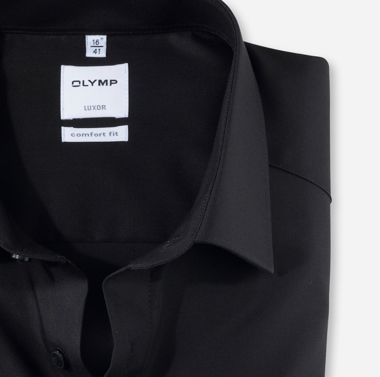 Olymp Luxor Black Non Iron Short Sleeve Shirt. Comfort Fit