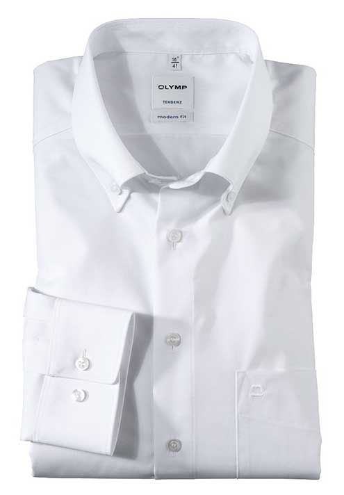 Olymp Tendenz White Cotton Long Sleeve Shirt.