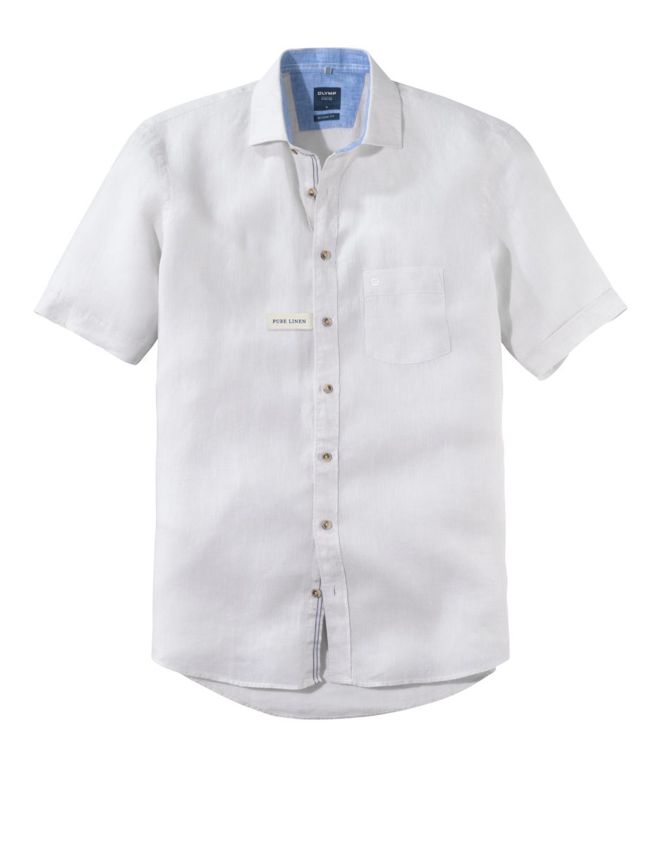 Olymp White Pure Linen Half Sleeve Shirt.