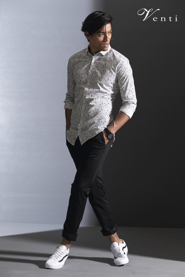 Venti Black and White Abstract Design Long Sleeve Shirt. Slim Fit. Only 16.5″ Left