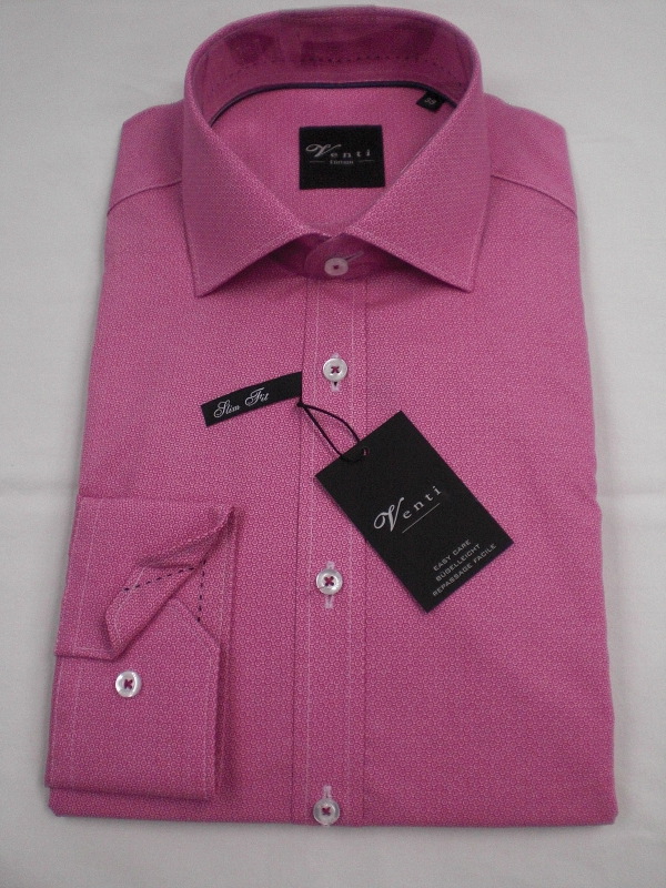 Venti Rose Coloured Slim Fit Shirt with Contrast Stitching.